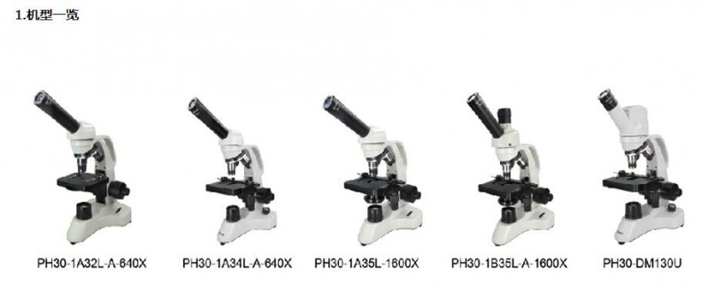 | 部件名称 | 技术参数 | PH31-640X | PH33-1600X | PH35-1600X | PH35-TV-640X | PH35-TV-1000X | PH35-TV-1600X | PH37-1600X |