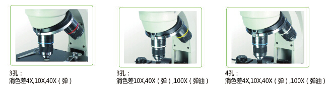 | 观察头 | 单目,30°倾斜,360°旋转 | ● | ● | ● | ● | |||