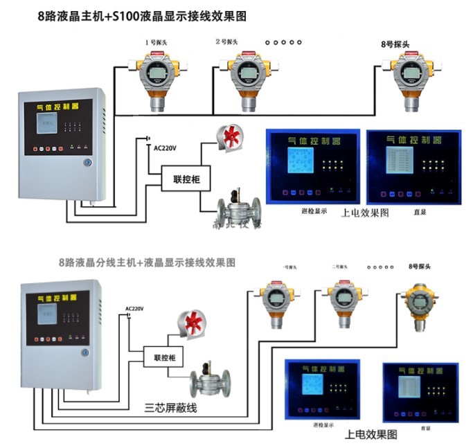 佰富彩 ◆ 系统与外接(气体)探测器连接线要求: