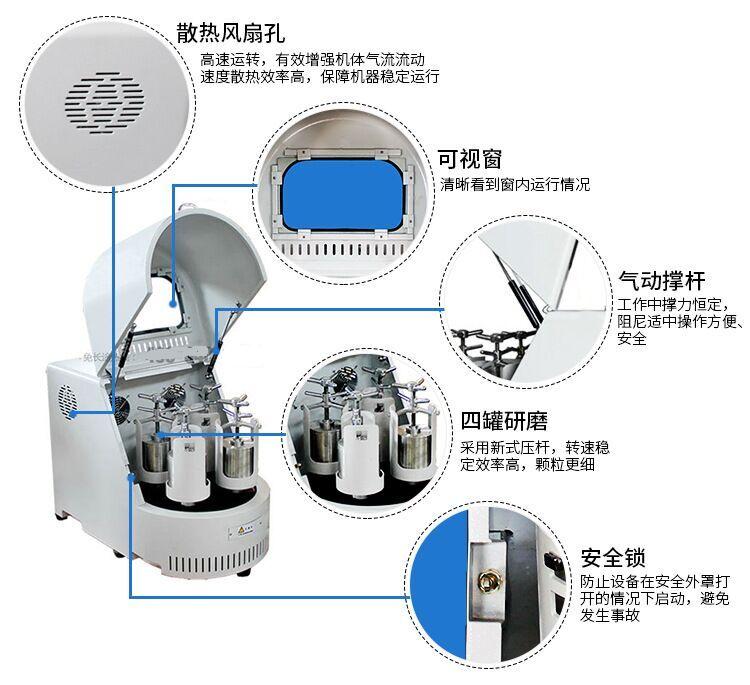 立式半圆形行星球磨机是混和、细磨、小样制备、新产品研制和小批量生产高新技术材料的装置。我司行星式球磨机体积小、功能全、效率高、噪声低,是科研单位、高等院校、企业实验室获取研究试样(每次实验可同时获得四个样品)的理想设备,配用真空球磨罐,可在真空状态下磨制试样。