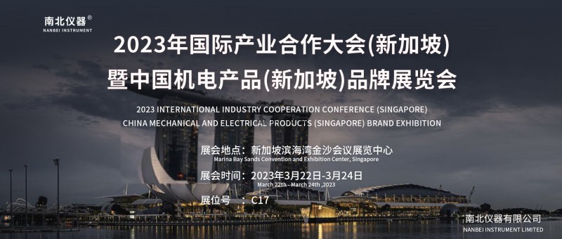 佰富彩 为推进高水平对外开放,加快建设贸易强国,南北仪器积极相应政策,精准开拓NANBEI品牌的国际市场,南北仪器将于2023年3月22日-3月24日参加2023年国际产业合作大会(新加坡)暨机电产品(新加坡)品牌展览会2023 International Industry Cooperation Conference (Singapore) China Mechanical and Electrical Products (Singapore) Brand Exhibition