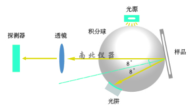 1、仪器采用通用的D/8(积分球漫射照明,8°观察角)SCI/SCE兼容照明观察条件