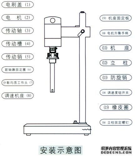 3.本机输入电源后,打开调速旋转开关,红色指示灯显示,然后缓慢地按顺序时针方向转动,电机开始起动,直至调到实验所需的转速。但在实验前,应行电机运转试验,试验时不要按装分散均质工作头。
