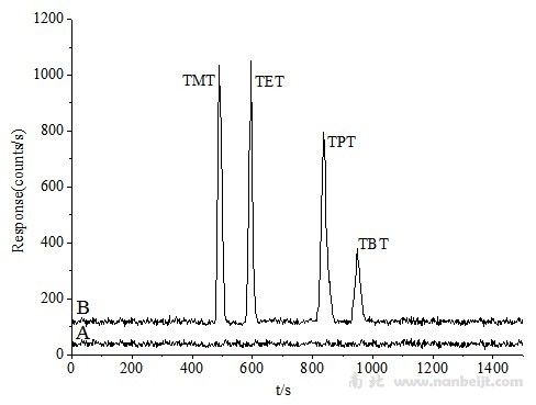 图1. TMT、TET、TPT、TBT混合标样CE-ICP-MS图