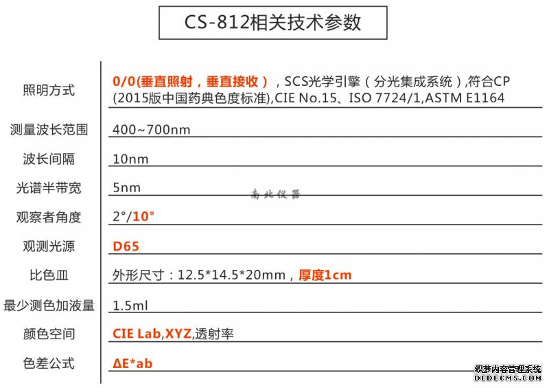 CS-812药品溶液分光测色仪/色差仪技术参数: